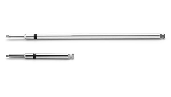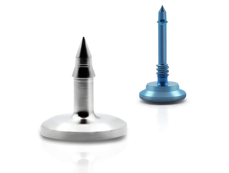 Las chinchetas de titanio están disponibles en dos longitudes (3 mm y 5 mm), con o sin rosca. Las chinchetas atornillables con cabeza hexagonal (4901-13 y 4901-15) pueden extraerse fácilmente con los destornilladores 4902-50 o 4902-55.