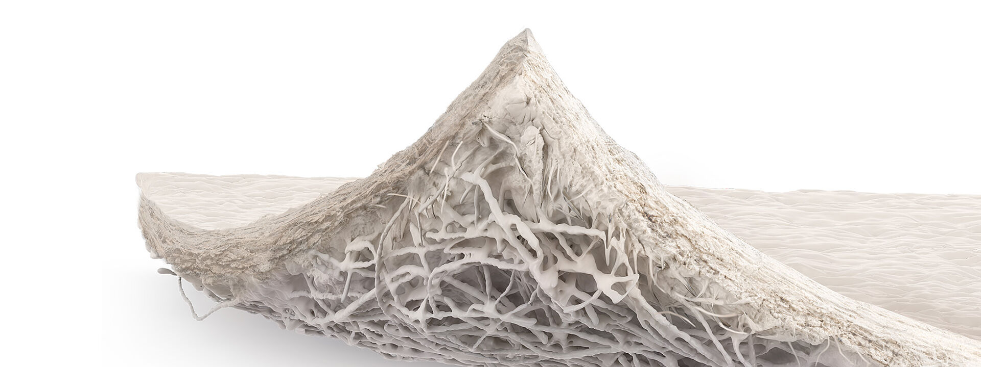- Preservación de la arquitectura de colágeno del tejido original debido a la optimización del proceso de fabricación. Esto resulta en unas excelentes propiedades tras el procesamiento y un perfil de degradación natural