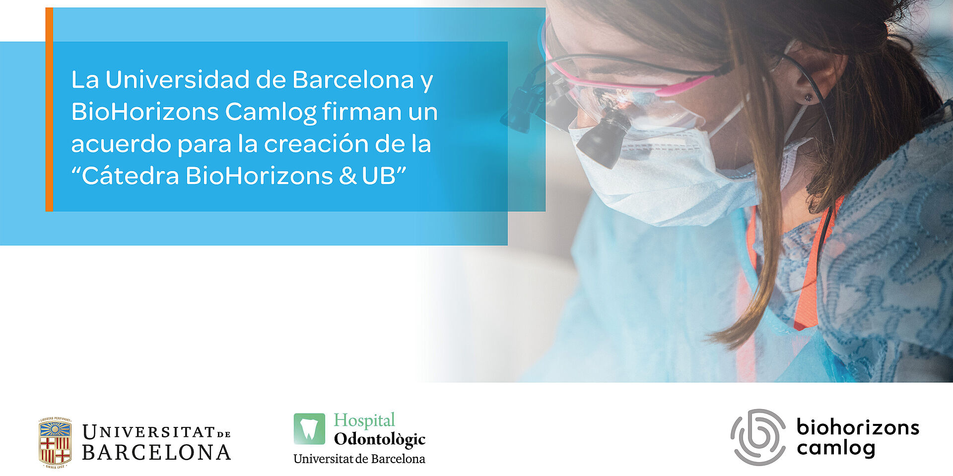 Madrid, febrero 2019. La Universidad de Barcelona y BioHorizons Camlog han firmado un acuerdo para la creación de la “Cátedra BioHorizons & UB”. Esta Cátedra nace con el objetivo de desarrollar proyectos de investigación alrededor de la implantología y la divulgación de los resultados científicos a la sociedad, así como actividades de formación en implantología oral avanzada.