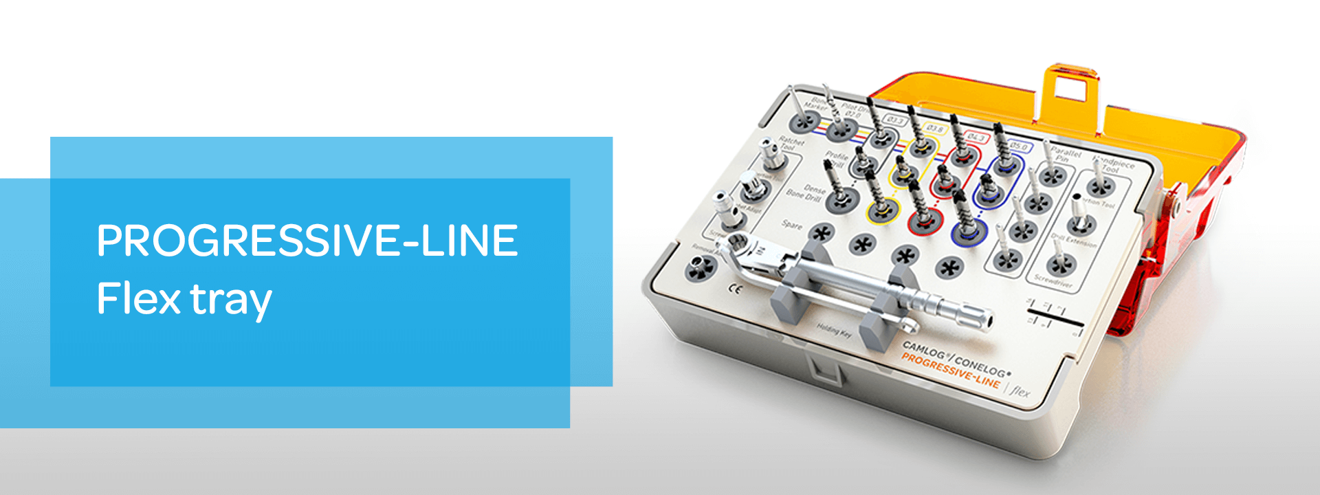 The PROGRESSIVE-LINE Flex tray is as small as a postcard! With a reduced number of instruments required for surgery, PROGRESSIVE-LINE Flex offers an efficient drilling protocol for multi-implant cases. This streamlining means efficiency during and after surgery.