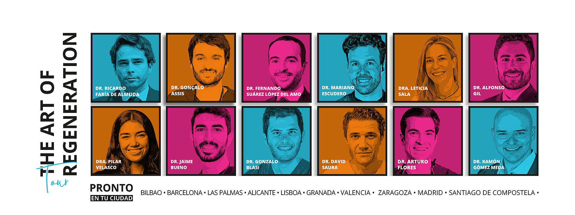 El tour llevará sus programas educativos avanzados y de vanguardia a una selección de ciudades tanto en España como en Portugal en 2024 y comienzos de 2025. Los profesionales de la odontología que participen en “The Art of Regeneration” Tour podrán llevar sus conocimientos al siguiente nivel y aprender de reputados expertos en el campo de la regeneración, como los Doctores Gonzalo Blasi, Javier Calatrava, Mariano Escudero, Ricardo Faria de Almeida, Alfonso Gil, Ramón Gómez-Meda, Leticia Sala y Fernando Suárez López del Amo.